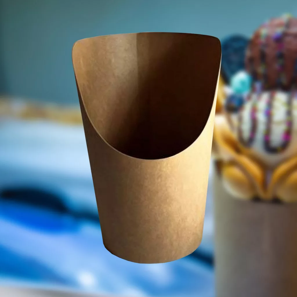 A Buborék gofris pohár (320 ml, barna) tökéletes választás Buborék gofri tálalásához és elviteléhez. Strapabíró kraft papírból készült, belső bevonata víz- és olajálló, így ideális krémes, feltétes buborék gofrihoz. Praktikus formája kényelmes fogyasztást és könnyű megtartást biztosít.